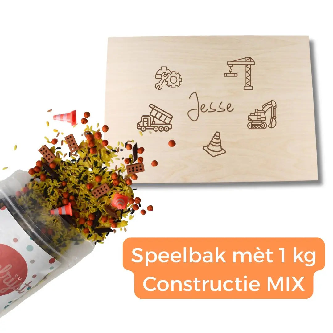 Houten speelbak constructie – gepersonaliseerd met 1 kg constructie mix