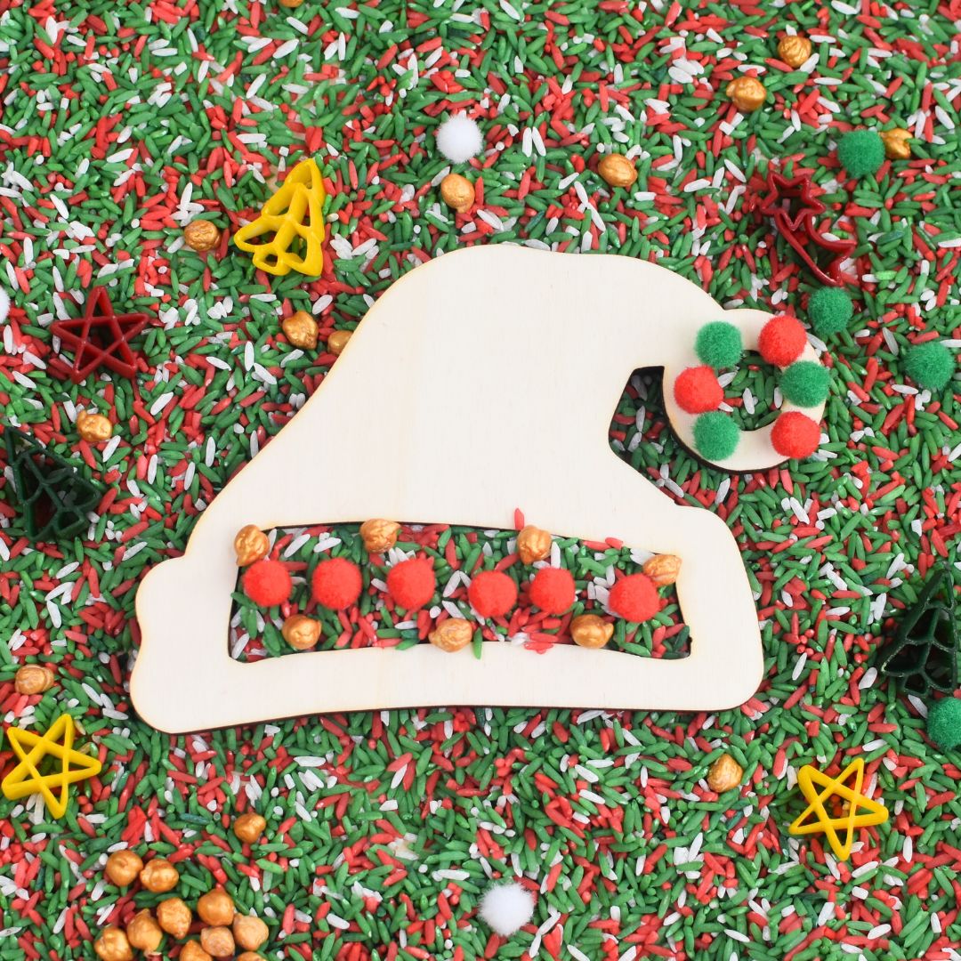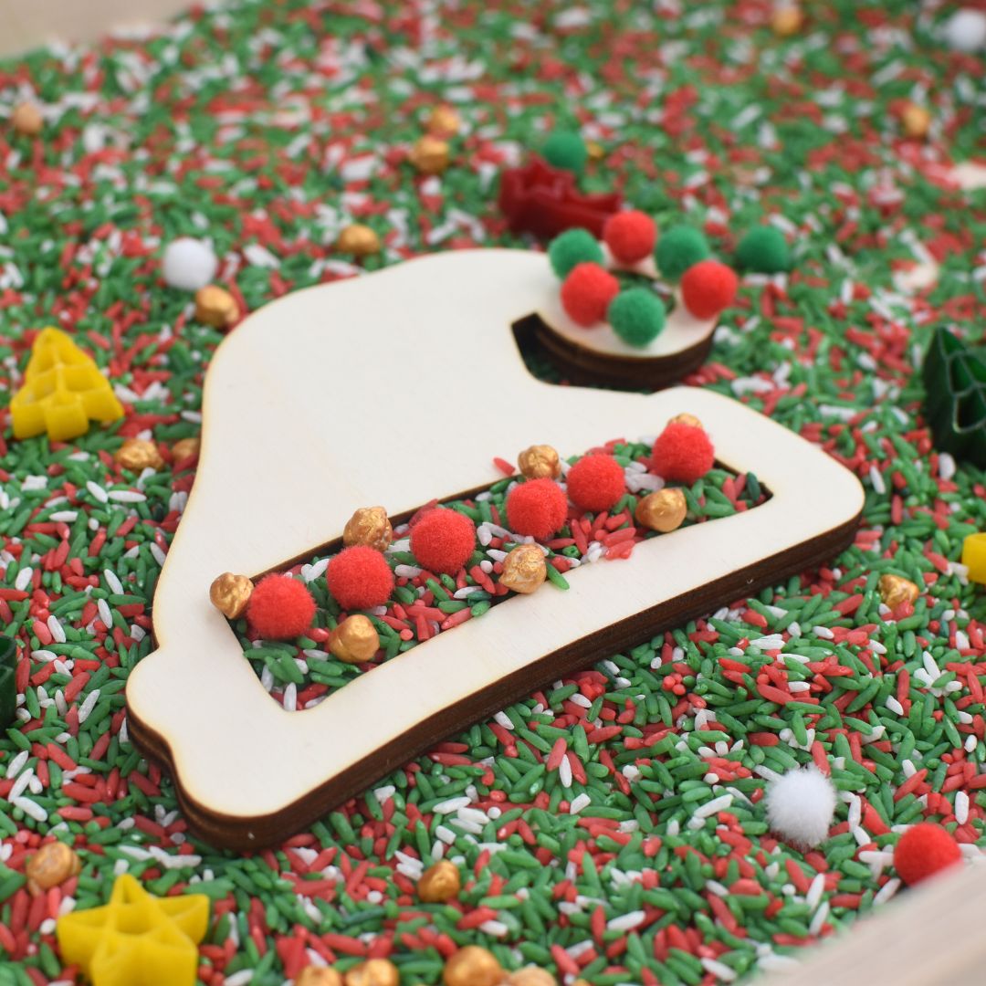 Voeg een vleugje feestvreugde toe aan je speelbak met deze houten vulvorm in de vorm van een kerstmuts. Vul hem met onze speciale speelrijst kerstmix en geniet van fantasierijk spel in echte kerstsfeer.