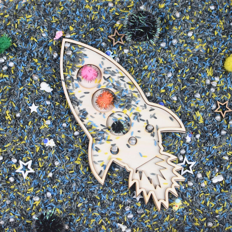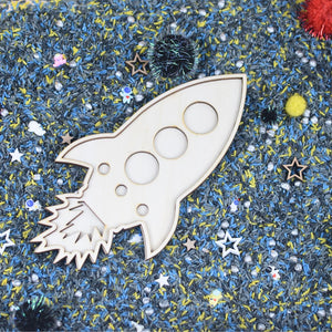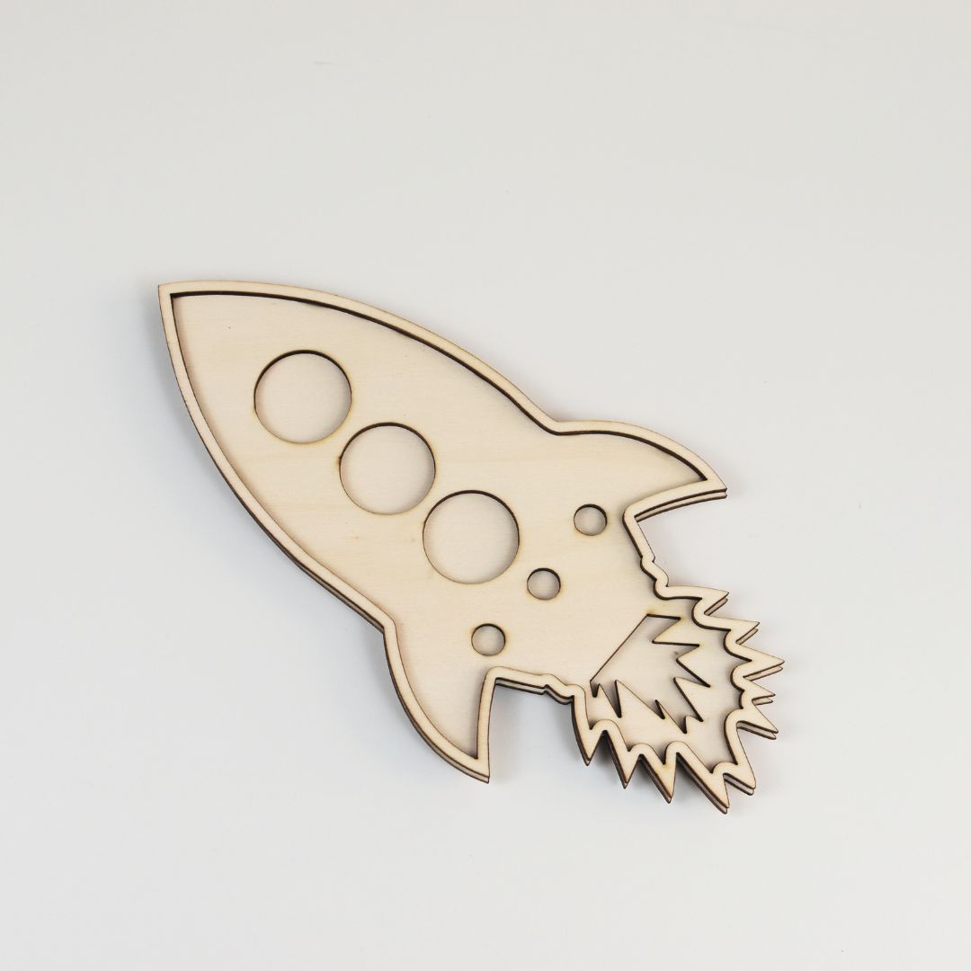 Met deze houten raket-vulvorm gaat elk ruimtethema leven.