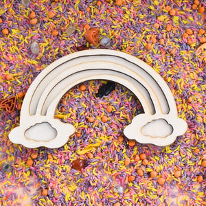 Maak het unicorn- en fantasiethema compleet met onze prachtige houten vulvorm in de vorm van een regenboog. Deze hoogwaardige houten vorm is perfect om te vullen met speelrijst, speelerwten of andere zintuiglijke materialen. Het stimuleert kinderen om creatief en ontdekkend te spelen, terwijl ze hun fijne motoriek ontwikkelen.