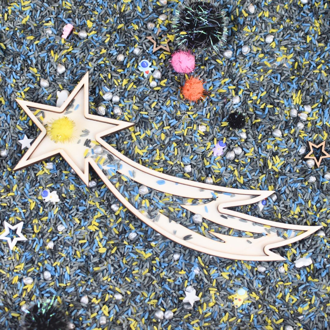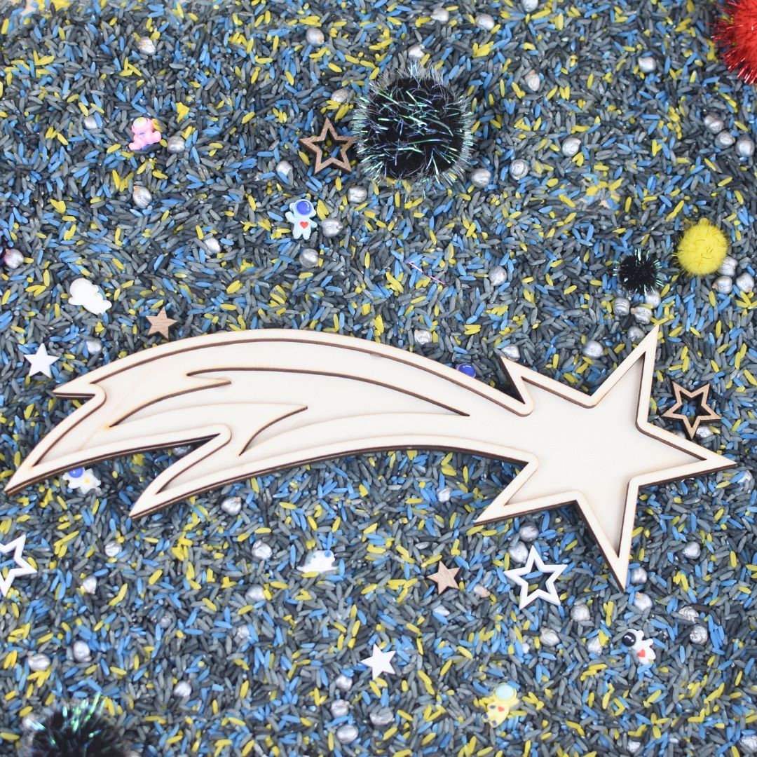 Met deze houten ster-vulvorm kunnen kinderen hun eigen magische momenten creëren. Vul de ster met speelrijst, kleine voorwerpen of themamaterialen en laat het verhaal van sterrenregen en nachthemel tot leven komen. Perfect voor creatief en thematisch spel.