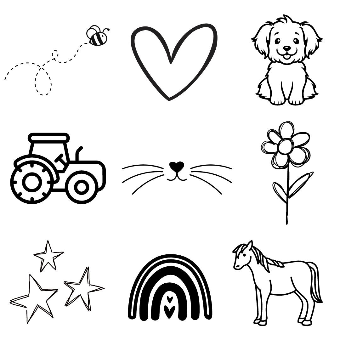 Laat de naam van je kind op de bundel graveren voor een persoonlijke touch, en kies uit maar liefst 15 unieke designs, zoals een hartje, vlinder of ster. Zo past de bundel perfect bij het karakter van jouw kind.