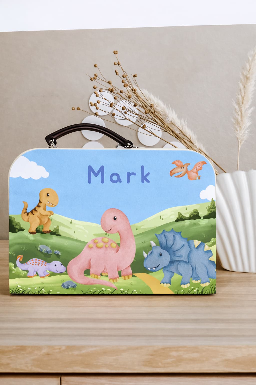 Koffertje dinosaurus met eigen naam (Mark)