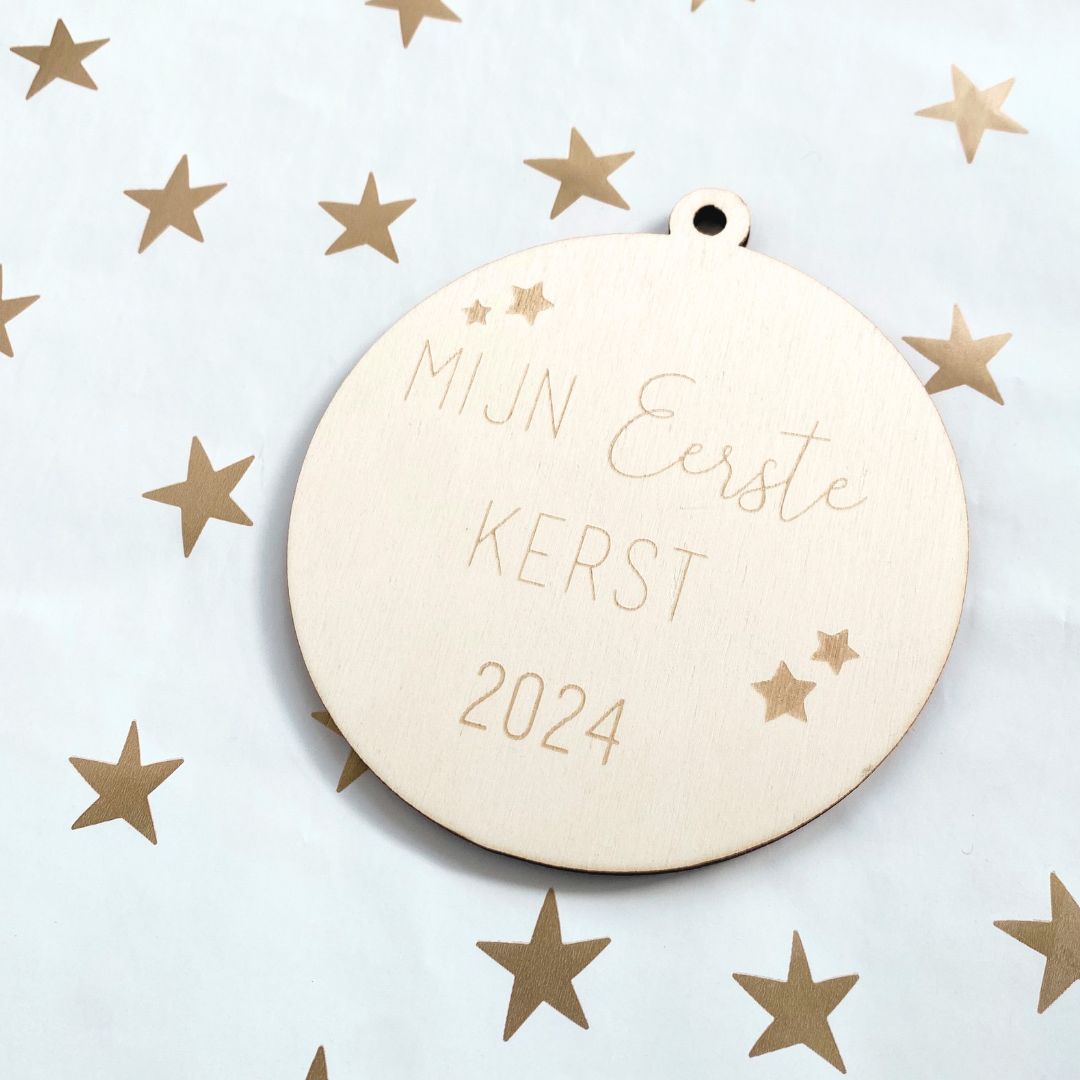 Vier de eerste kerst van je kindje in stijl met deze gepersonaliseerde houten kerstbal – een prachtige herinnering voor de komende jaren!