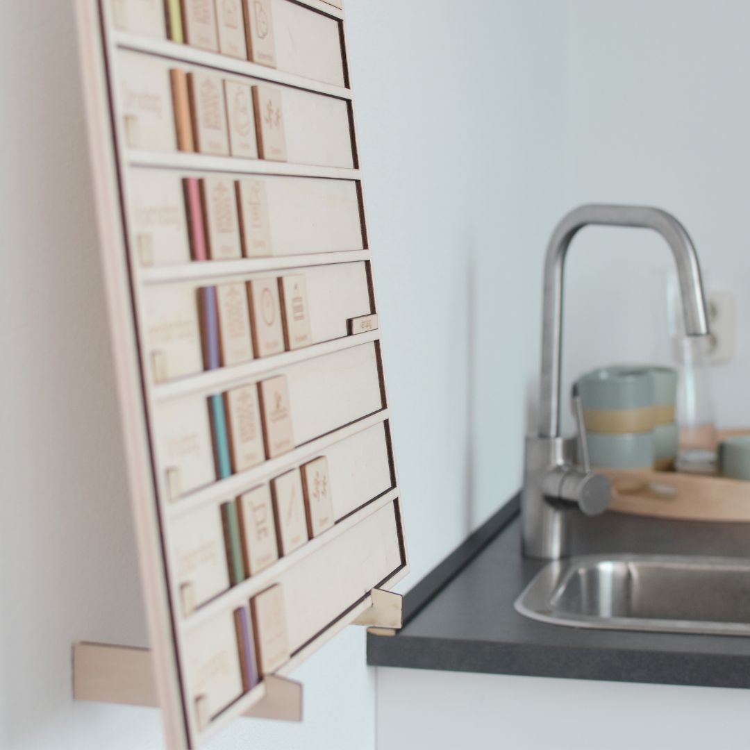 Wil je jouw houten weekplanner of dagplanner aan de muur hangen? Met dit slimme ophangsysteem bevestig je hem eenvoudig én stevig – zonder de planner te beschadigen.