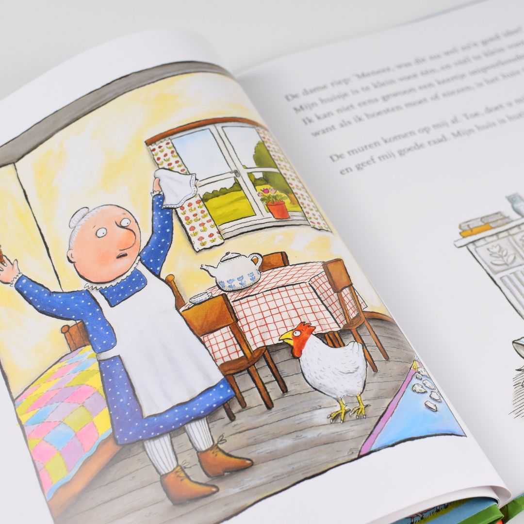 Wanneer een oude vrouw klaagt dat haar huisje te klein is, krijgt zij een verrassend advies: laat er dieren bij wonen! Een kip, een geit, een varken… het wordt steeds hutjemutje voller. Hoe loopt dat af?