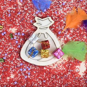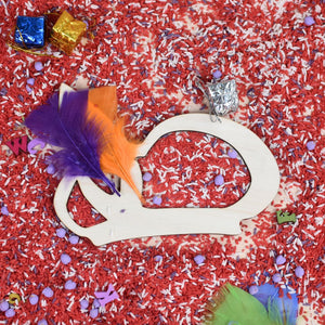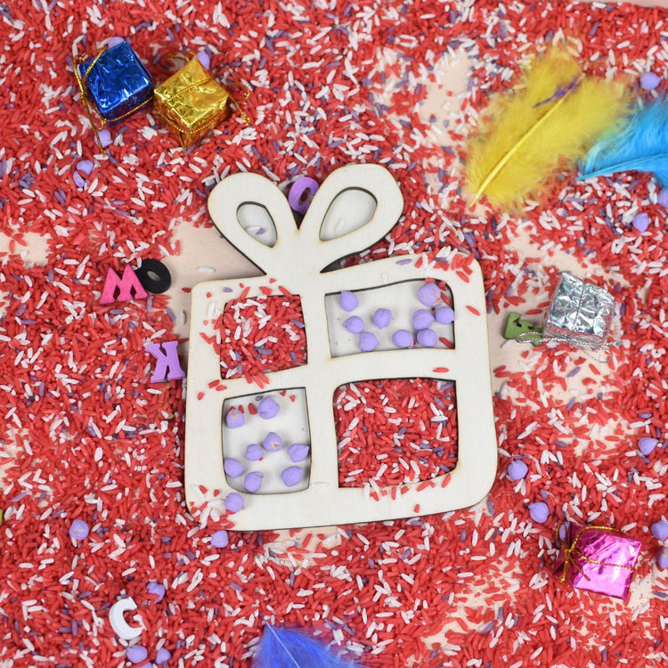 - Een houten vulvorm: kies zelf uit welke vulvorm je wil toevoegen aan deze set. Je hebt keuze uit: cadeautje, zak, mijter of pietenmuts.