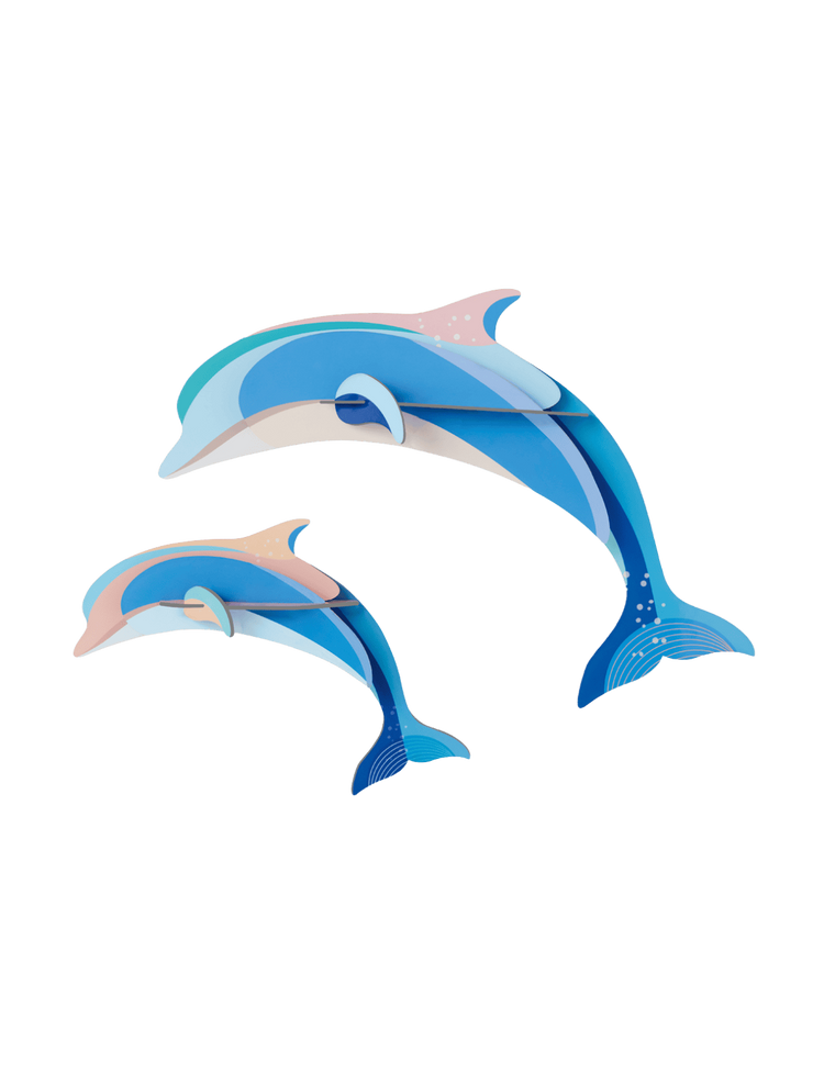 De set bestaat uit twee 3D-dolfijnen in verschillende formaten die je zelf eenvoudig in elkaar zet. Het in elkaar zetten is een ontspannen en creatief moment dat concentratie en fijne motoriek stimuleert. Eenmaal opgehangen zorgen de dolfijnen voor een lichte, speelse dynamiek die doet denken aan beweging onder water.