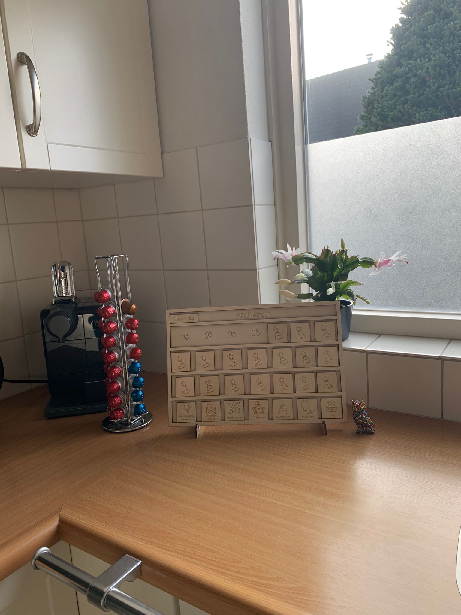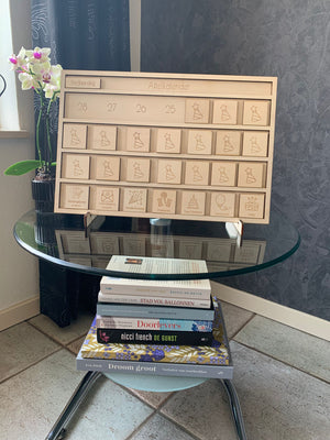 Je telt de dagen af tot de verjaardag van je kind. Elke dag heeft een eigen houten vakje met ruimte voor een pictogram. Kies zelf of je een persoonlijk naamkaartje en een bijpassend houten kistje voor de pictogrammen toevoegt – zo maak je de set helemaal op maat voor jouw gezin.