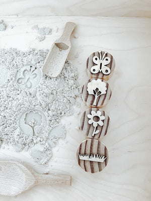 - 4 houten stempels: kies zelf welke stempels je wil toevoegen aan deze set. Je hebt keuze uit: lucht, herfst, unicorn, prinses, lente, blaadjes, dinosaurus en oceaan.