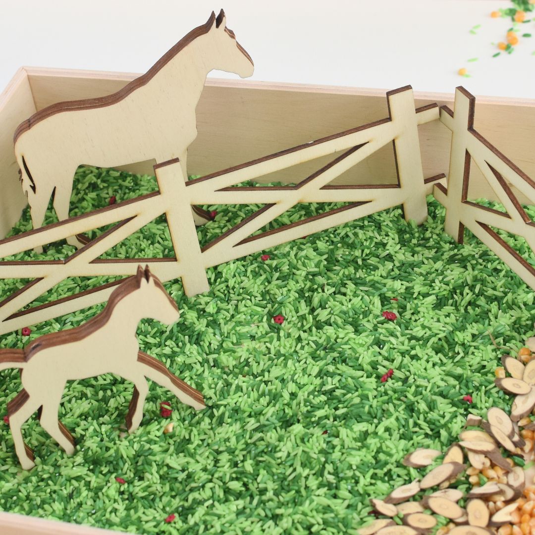 Combineer de houten hekjes met onze (houten) speelbak en boerderij-mix van speelrijst voor eindeloos speelplezier. De verschillende boerderijfiguren van hout kunnen natuurlijk ook niet ontbreken.